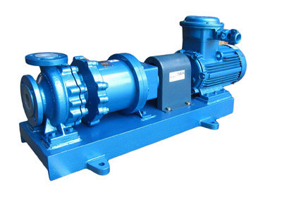 CGF無泄漏襯氟高溫磁力泵(簡稱:襯氟磁力泵)是應用現代磁力學原理,利用永磁體的磁力傳動實現扭矩的無接觸傳遞的一種新型泵,也就是電機帶動外轉子(即外磁鋼)總成旋轉時,通過磁場的作用磁力線穿過隔離套帶動內轉子(即內磁鋼)總成和葉輪同步旋轉,過流部件全部采用氟塑料制造,可輸送任意濃(強)度的酸、堿、氧化劑等腐蝕性介質,隔離套采用特殊材料制造具有高強度的力學性能,消除了磁力泵存在的磁渦流現象,由于介質封閉在靜止的隔離套內,從而達到無泄漏抽送介質的目的,徹底解決了機械傳動泵的軸封泄漏,而設計的全密封、無泄漏、無污染、耐強酸、高效節能的新型無泄漏耐酸泵,性能達到國際標準、可替代價格昂貴不銹鋼,特殊合金材料、進口的化工泵。