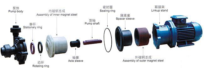 ■ CQF工程塑料磁力泵結(jié)構(gòu)爆破圖: